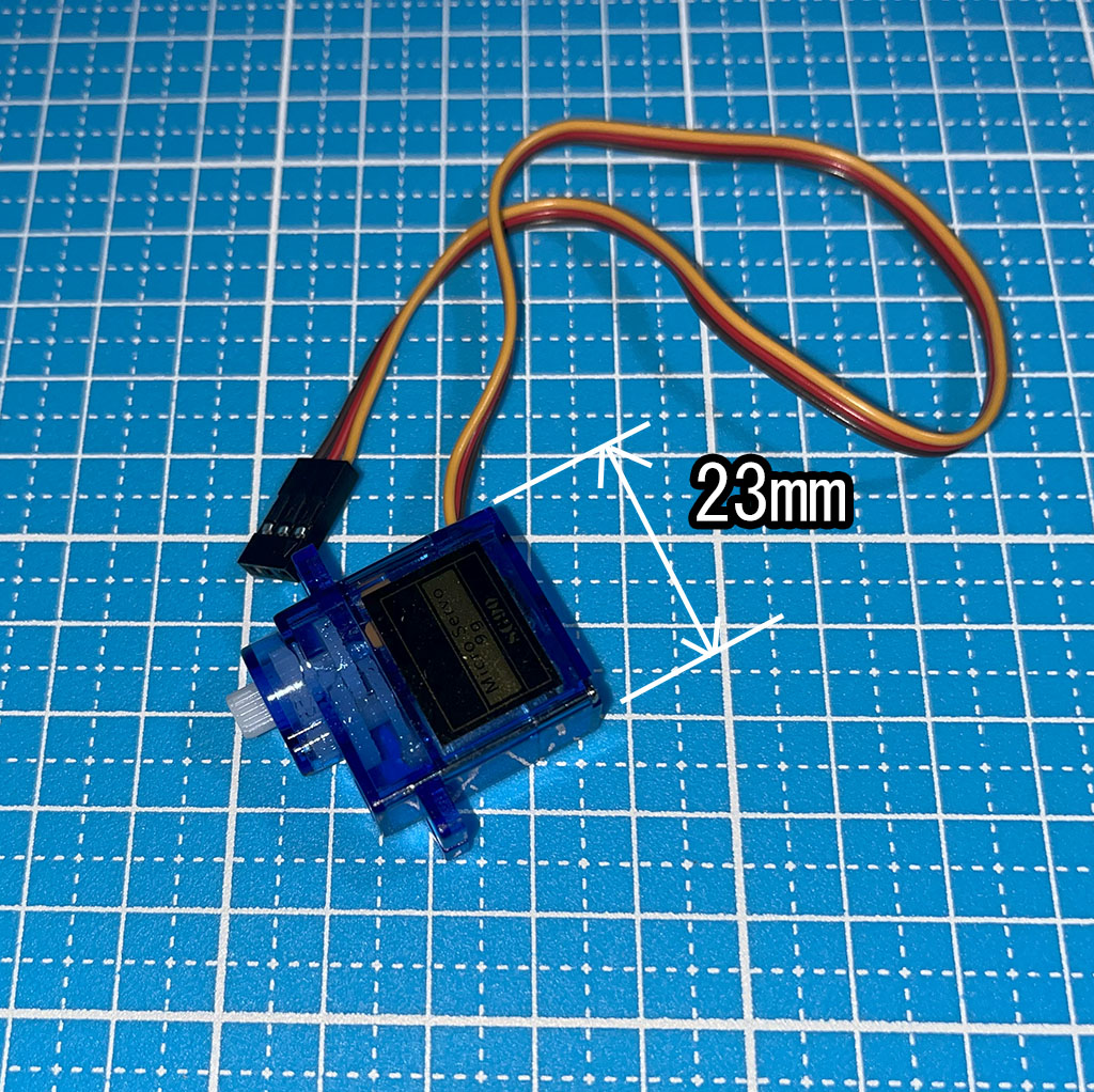 SG90という小さいモーターが安価で手に入ります。思ってたより小さいのに驚きました。Amazonで4個で1000円ぐらいで購入しました。