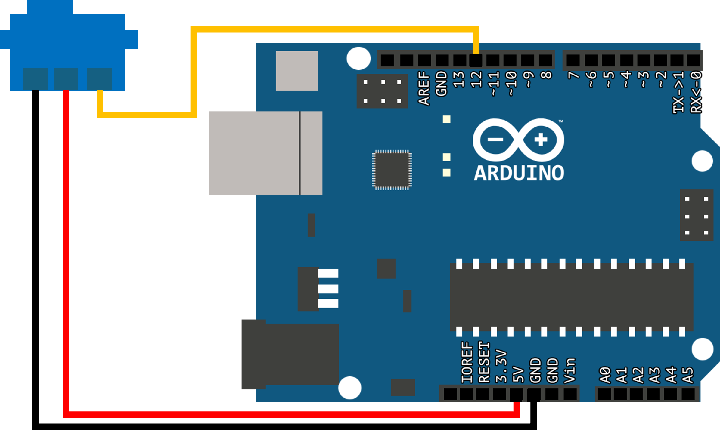 12番に接続しているのでsrv.attach(12, 500, 2400);で定義します。loopで0度と90度の動作を繰り返します。