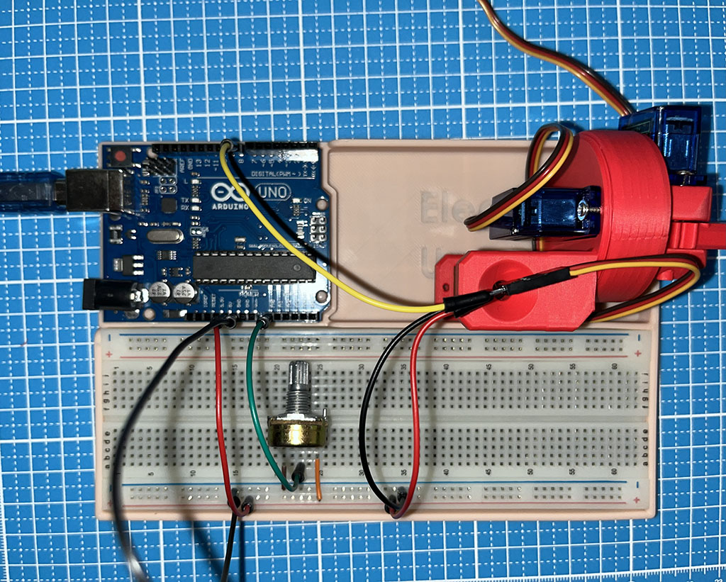 ロボットアームをロータリーポテンショメータを使って操作できるようにしました。言っておきますが犬マンマは電子工作なんて今までしたこともないし何の知識もありません。あるのはAIがロボットアームを動かすところを見てみたいという好奇心だけです😅