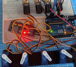 4つのポテンショメータで4つのサーボを動かすテストです。