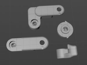 肩が逆方向に回るので修正しました。ベースもカクカクだったので作り直し。フィラメントを黄色にしたのでツギハギになってます。