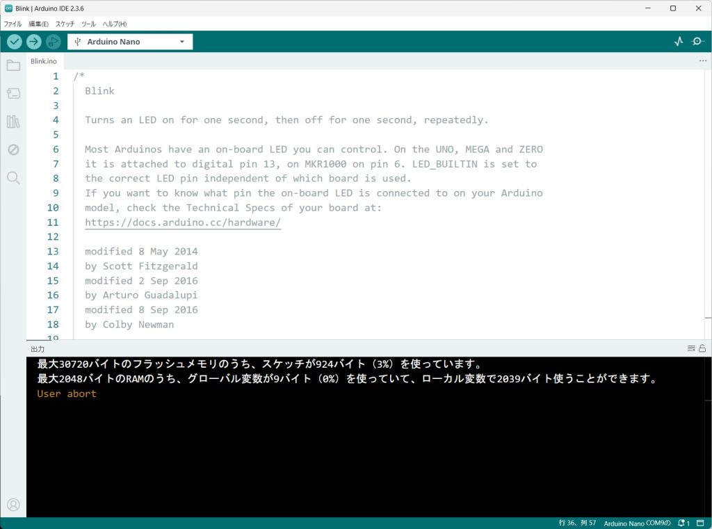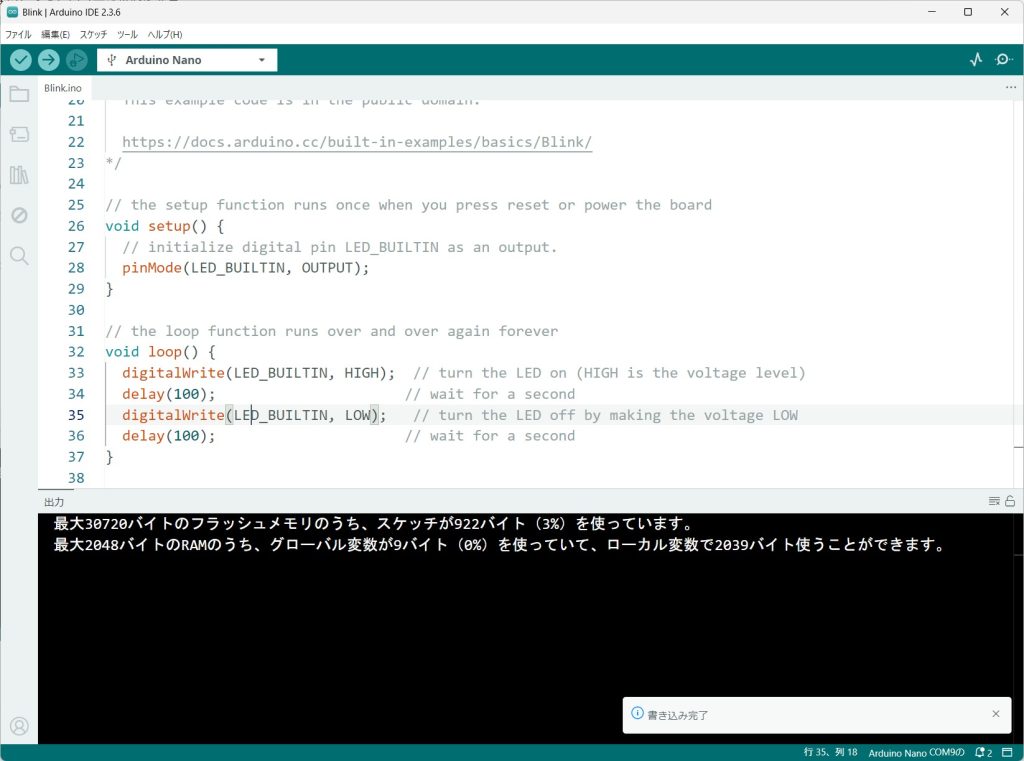 ほんで早速Lチカ(ボード上のLEDをチカチカさせるだけの初歩プログラム)を書き込みしてみました。